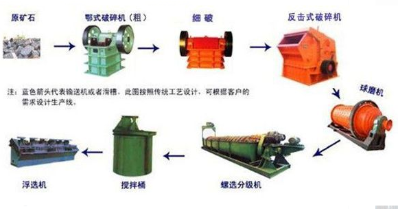 煙臺金鵬礦機對常見礦石的選礦方法和工藝介紹