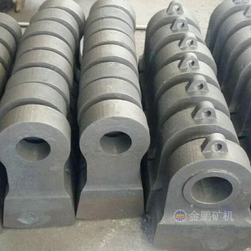 采用高錳鋼、超高錳鋼、合金鋼單一材質或雙金屬復合鑄造,結合先進的生產工藝生產制做高錳鋼錘頭、超高錳鋼錘頭、高鉻錘頭、復合錘頭等,來適應錘式破碎機不同的服役條件。
